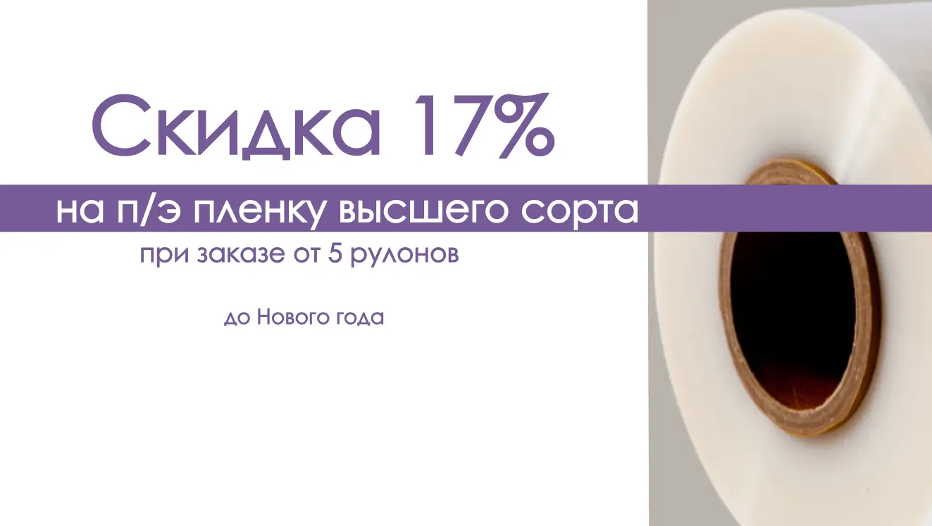 Успевайте заказать полиэтиленовую пленку высшего сорта до Нового года. Со скидкой 17% при заказе от 5 рулонов. Акция действует до 31.12.2025 г. Просчитать ваш заказ, уточнить цены можно по номеру телефона 221-82-77,